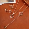 5 Pcs Women's Zircon Set - LuckyFive-Leaf Clover Necklace And Bracelet, Women's Accessories Suitable For Acations And Daily We