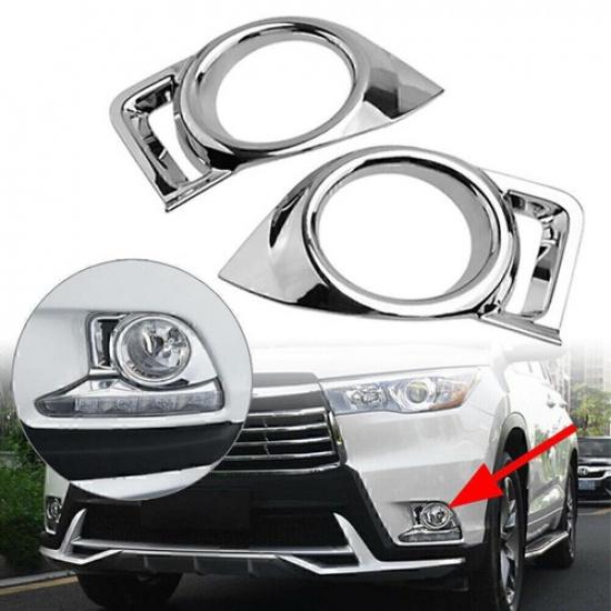 ABS Chrome Front Fog Light Lamp Cover Trim Fit For Toyota Highlander 2014-2016