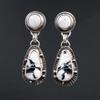 Hot Selling Women's Blue Resin Inlaid Retro Jewelry Metal Handmade Pendant Earrings