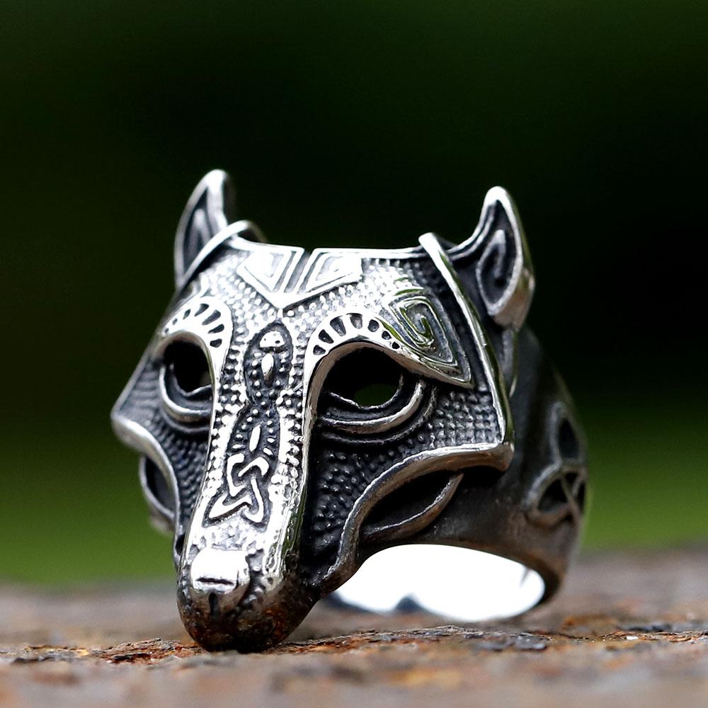 New Viking Githic Style Stainless Steel Ring Men Nordic Trinity Wolf Head Wedding Rings Jewelry Boyfriend Gift Free Shipping