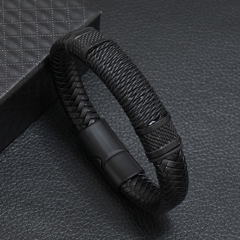 Trendy Leather Bracelet Homme Punk Men Bangle Gift For Husband Hiphop Rock Charm Braclet Pulsera Hombre Mirco Magentic Brazalete