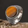 Prjewel Round Tiger Eye Stone Top Finger Band Black Zircon Stainless Steel Stamp Ring Dragon Scales Textured Signet for Men