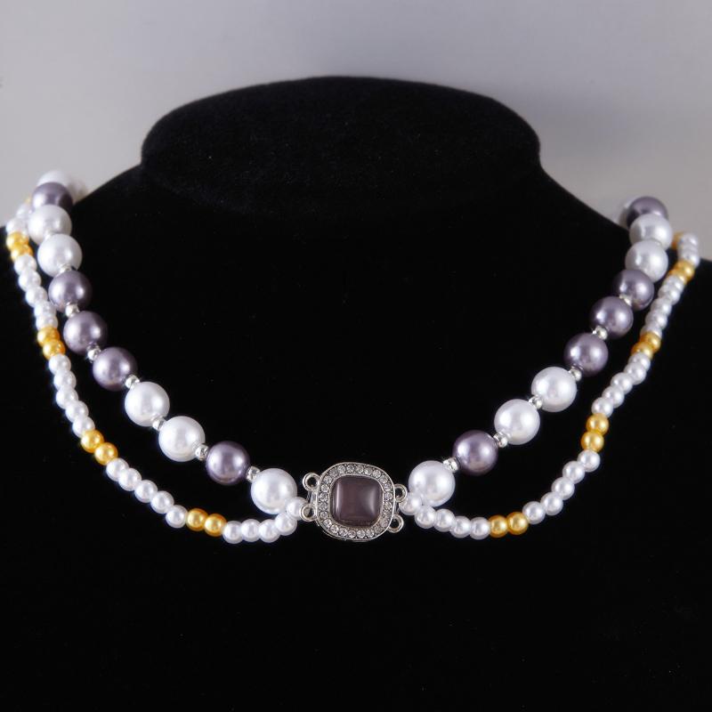 Double Layered Twisted Mixed Color Imitation Pearl Necklace, French Sweater Chain, Light Luxury Collarbone Chain, Party Gift