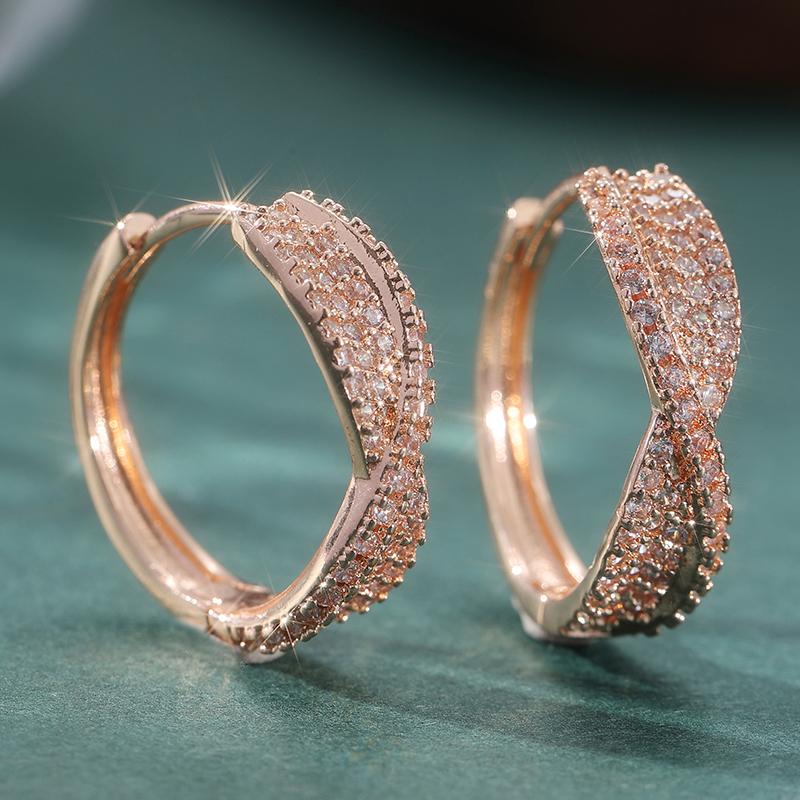 Luxurious Sparking Inlaid Synthetic Zircon Golden Plated Hoop Earrings Women Exquisite Daily Wedding Jewelry Accessories