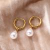 Simple Temperament Teardrop-shaped Imitation Pearl Pendant Stainless Steel Hoop Earrings for Women Daily Commuting Jewelry Gifts
