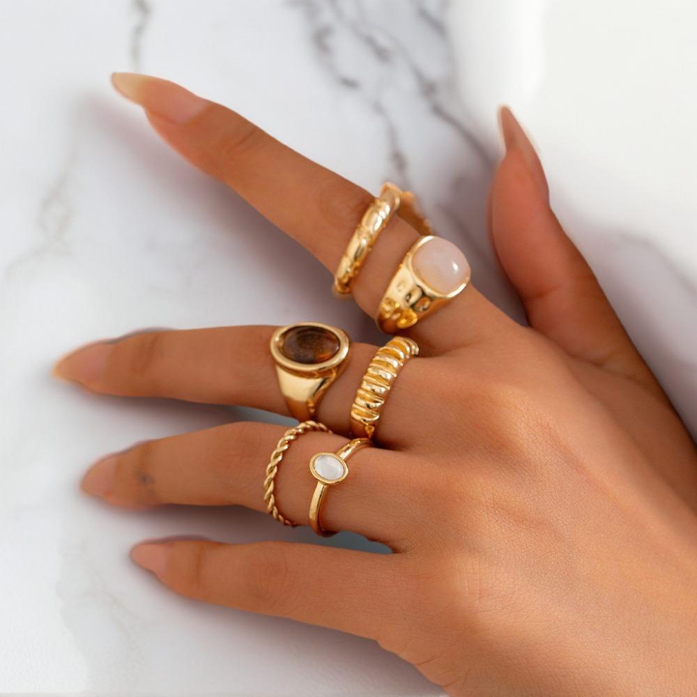 6PC Trendy Geometric Cuff Rings Set for Women Metal Adjustable On The Finger Ring Ladies Statement Jewelry