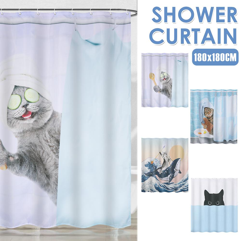 Cute Shower Curtain Polyester Waterproof Bath Curtain with 12 Hooks Funny Cat Patterns Bathroom Decoration for Home Apartment