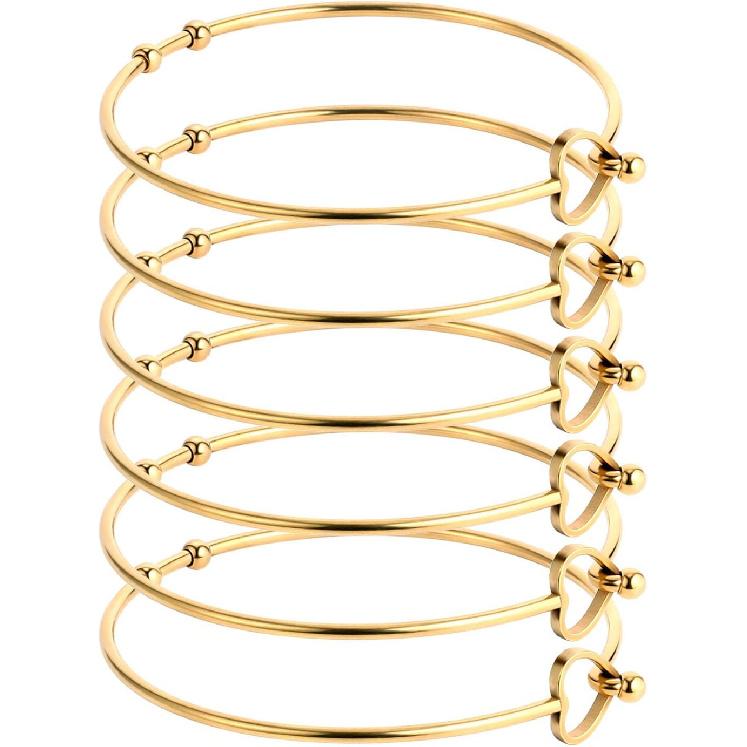 ALEXCRAFT Wholesale 6PCS 14K Gold Stainless Steel Bracelet Bangle Open Blank Wire Charm Bangle Bulk for Jewelry Making
