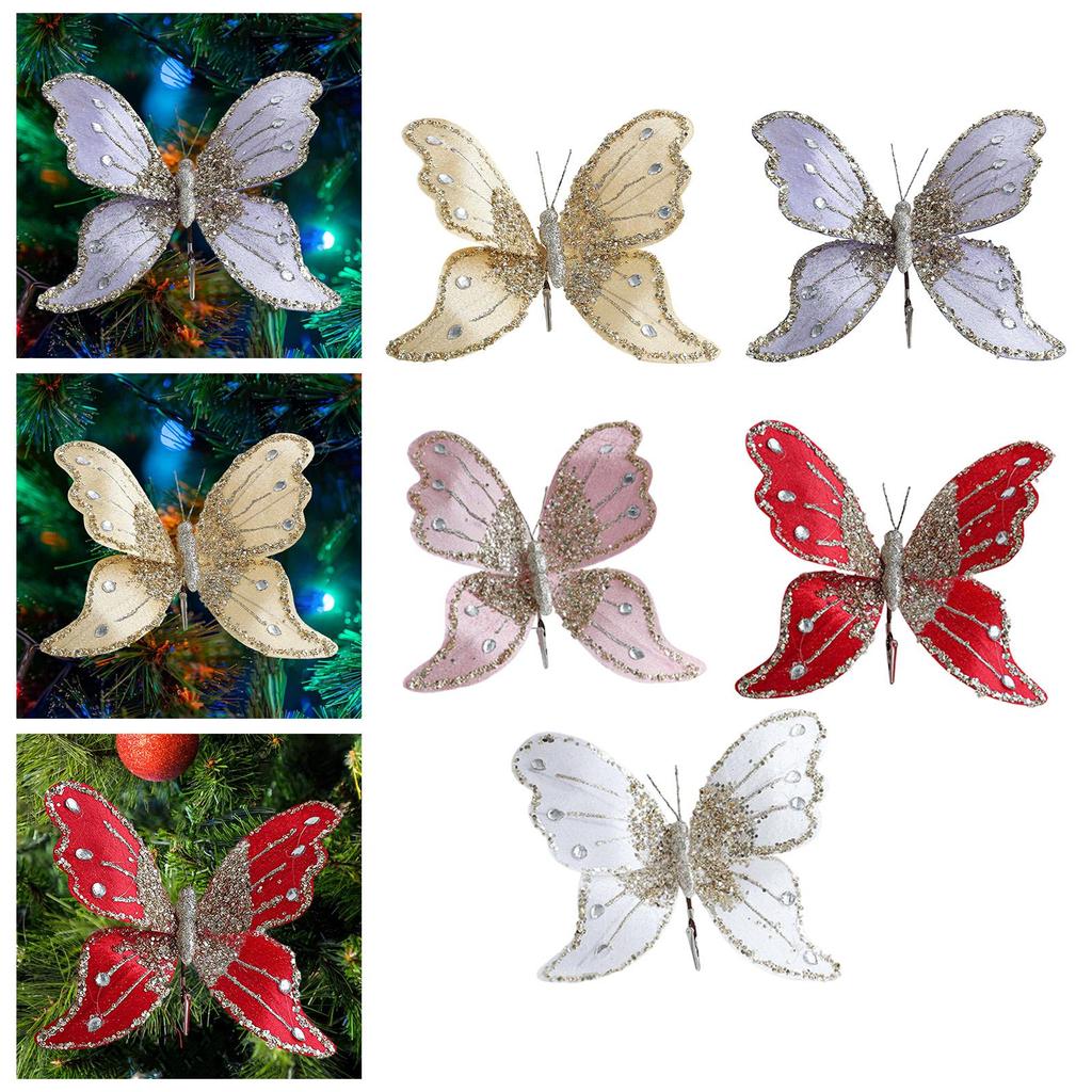 Butterfly Clip Christmas Ornament Glitter Decorative Collectible Artificial Butterfly for New Year Wedding Birthday Office