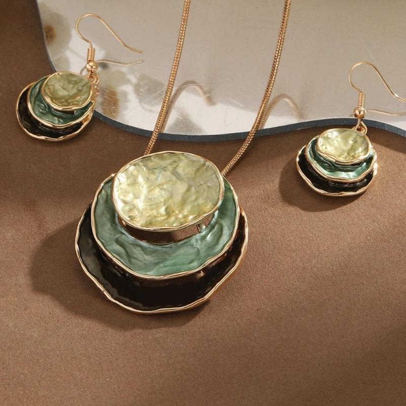 Colored Shell Pendant Earrings Bohemian Oil Earrings Necklace Women's Jewelry Set
