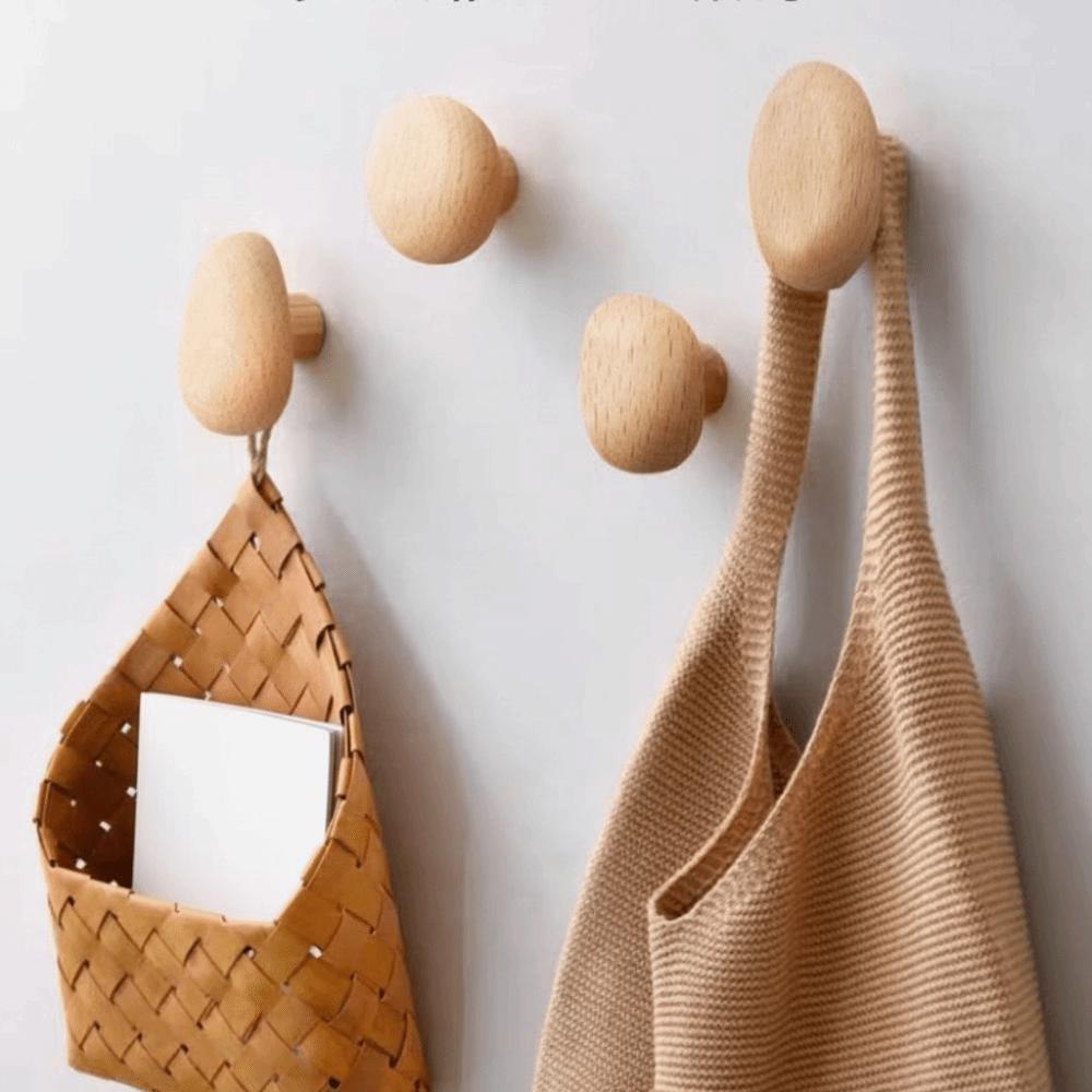 4pcs Key Hanger Beech Walnut Wood Wood Hook Punch Free Solid Wood Wall Hook Wood Handle Simple Design Towel Hook Home Decoration
