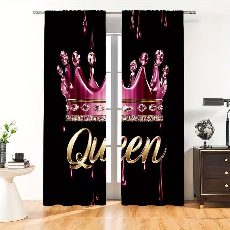 2 Pcs Pink Crown Print Curtains,suitable for Bedroom,living Room Kitchen Decoration,home Decoration,window Decoration