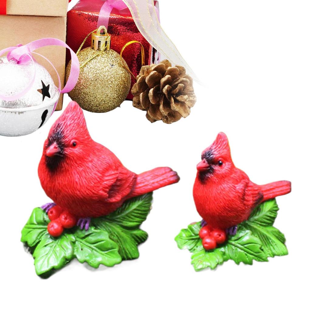 Red Bird Figurine Decorative Red Bird Christmas Figurines Animal Resin Tabletop Statues For Holiday Winter Indoor Outdoor Garden