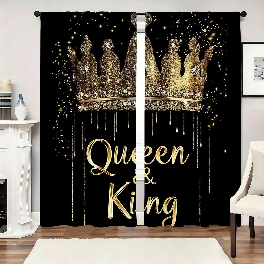 2pcs Golden Crown Printed Curtains Room Darkening Polyester Curtain Home Decor Rod Pocket Window Drapes