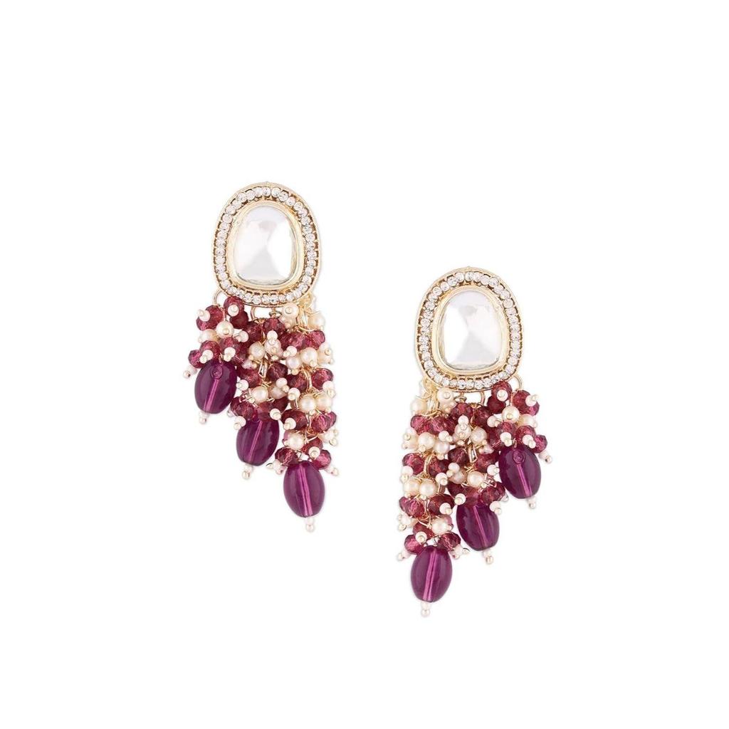 Purple Cluster Beads Embellished Kundan Traditional Drop Earring For Women