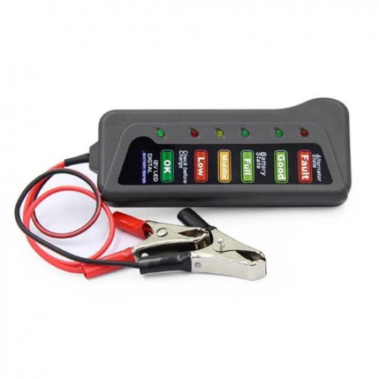 User Friendly 12V Car Battery Tester with Two Testing Clips and LED Lights