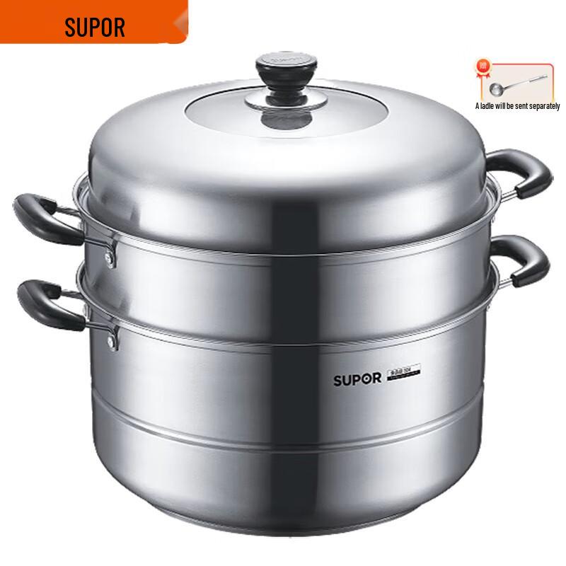 SUPOR 34cm 304 Stainless Steel Steamer with Visible Lid