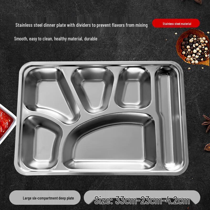 Jiwanggu 201 Stainless Steel 6-Compartment Deep Fast Food Tray