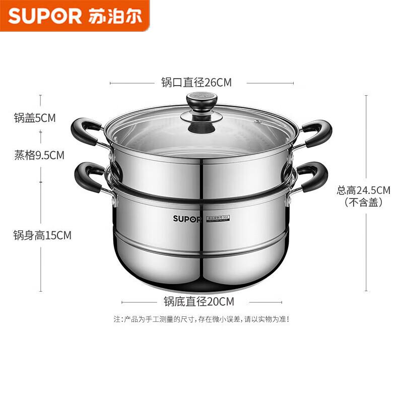 SUPOR 28cm 304 SS Double-Layer Steamer Pot
