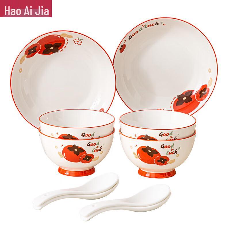 Hao Ai Jia Lucky Persimmon Ceramic Dinnerware Set, 10-Piece