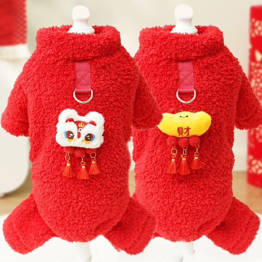 Double-sided Velvet Dog Jumpsuit Lion Dance Pet Four Legged Clothing Dog New Year Costumes Party