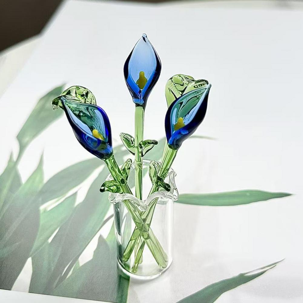Handcrafted Glass Callalily with Stem Hand-Blown Mini Glass Flower Figurine Decoration Home Living Room Office Colorful Floral Ornament