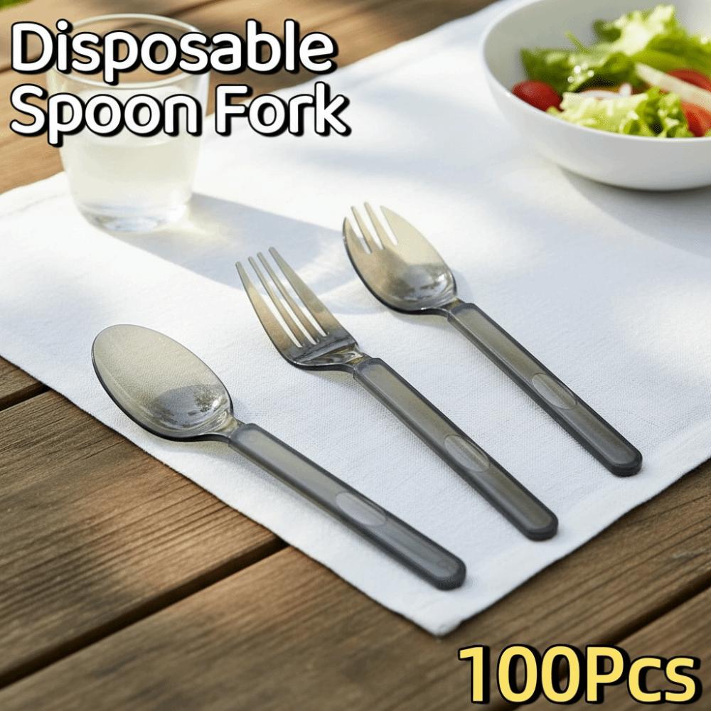 100Pcs Eco-Friendly Disposable Spoon Fork Thickened Transparent Plastic Spoon Party Supplies