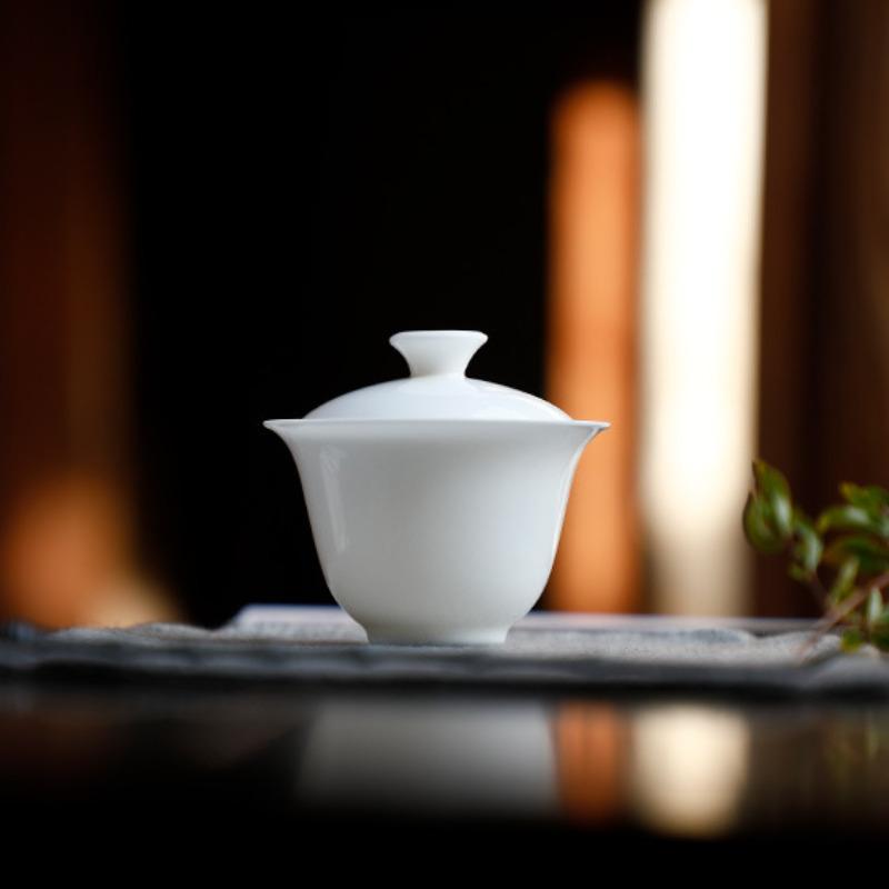 150ml Mutton Fat Jade Gaiwan Luxury Tea Bowl Not Hot Tea Tureen Tea Bowl With Lid Kit Tea Brewing Cover Bowl Tea Ceremony Gift