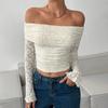 Women's Off,Shoulder Single,Layer Lace Slim Fit T,Shirt Long,Sleeved Top