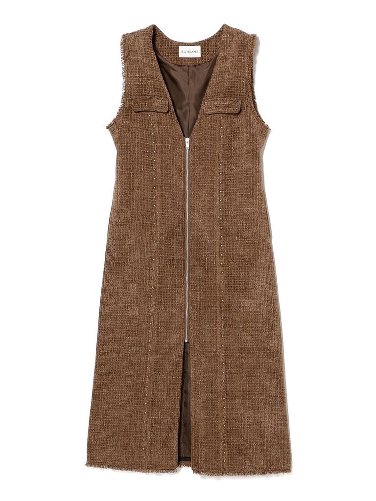 Ray Beams Women's Tweed Studded Sleeveless Dress, Brown