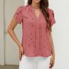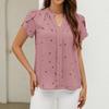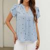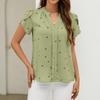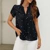 Women's Fashionable V Neck Heart-shaped Printed Petal Short Sleeved Shirt With Temperament Top
