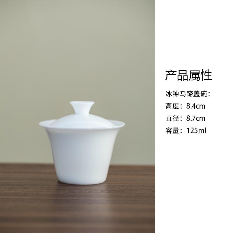 125ml Mutton Fat Jade Ice Seed Horseshoe Gaiwan Ancient Tea Tureen Tea Bowl With Lid Kit Tea Maker Cover Bowl Tea Items Gift