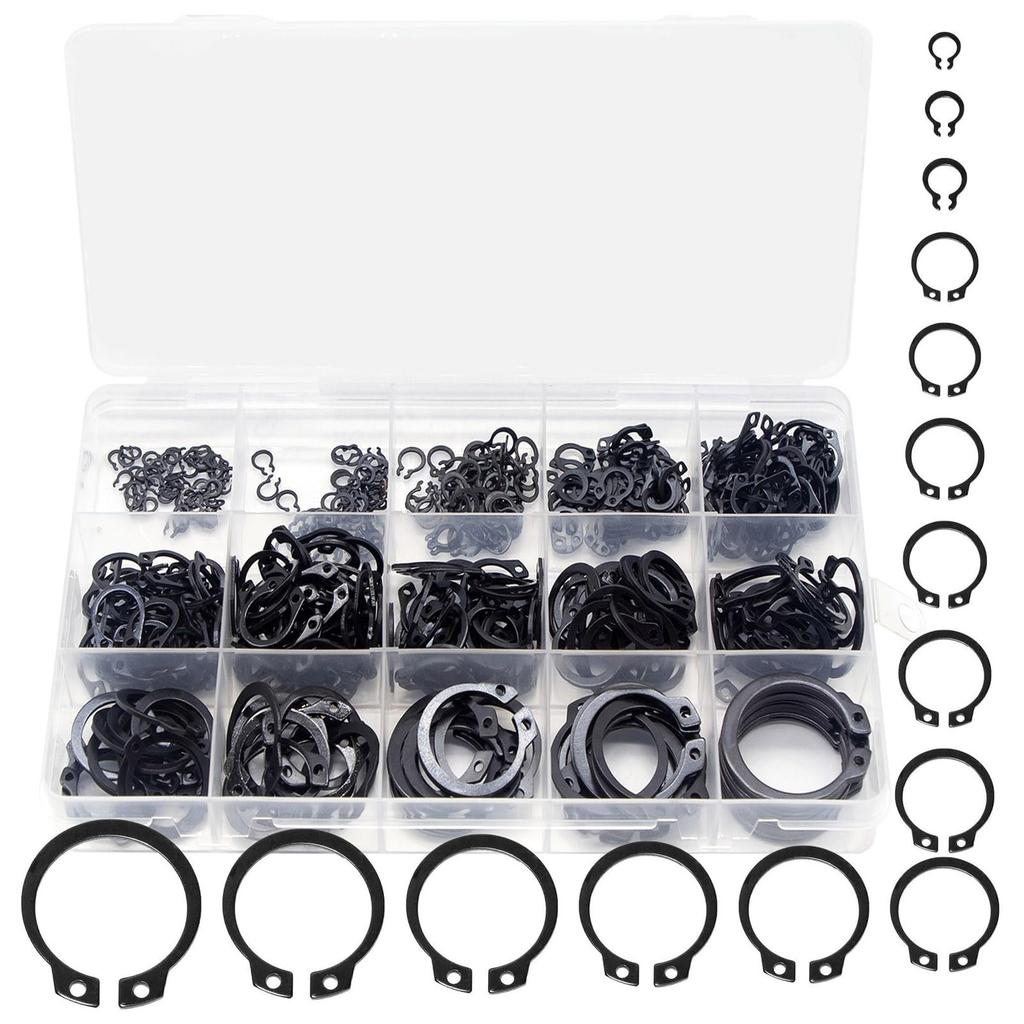 Set includes 225 pieces C-shaped circlips in 15 different sizes (3mm, 4mm, 5mm, 6mm, 8mm, 10mm, 11mm, 12mm, 14mm, 15mm, 16mm, 18mm, 20mm, 22mm, 25mm) From daily repairs, equipment maintenance, parts replacement, you are sure to find the perfect size for your every need