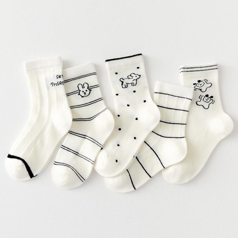 5pairs/set Children's Lovely Animal Boys Socks White Cute Dog Cotton Socks Cartoon Girls Spring Summer Striped Dog Sock