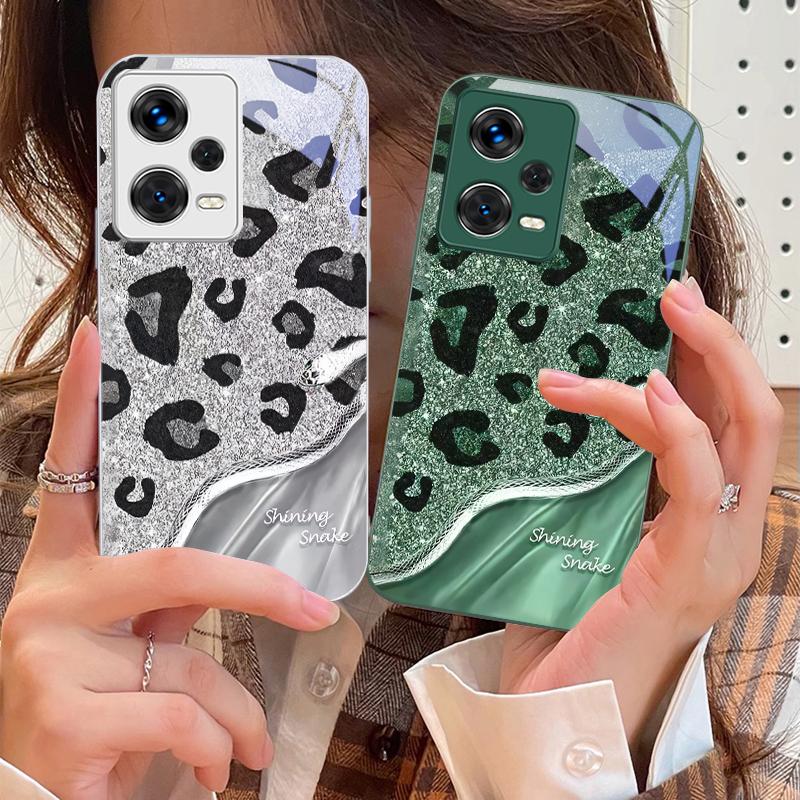 Leopard Sequin Snake For Xiaomi 14 Ultra 13 Lite Redmi Note 13 11 Pro 12 Plus Poco X6 3 Pro F4 6 GT Tempered Phone Case