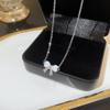 Korean Silver Titanium Steel Necklace Girls Versatile High-end Sense Niche Pearl Butterfly Pendant Collarbone Chain Jewelry