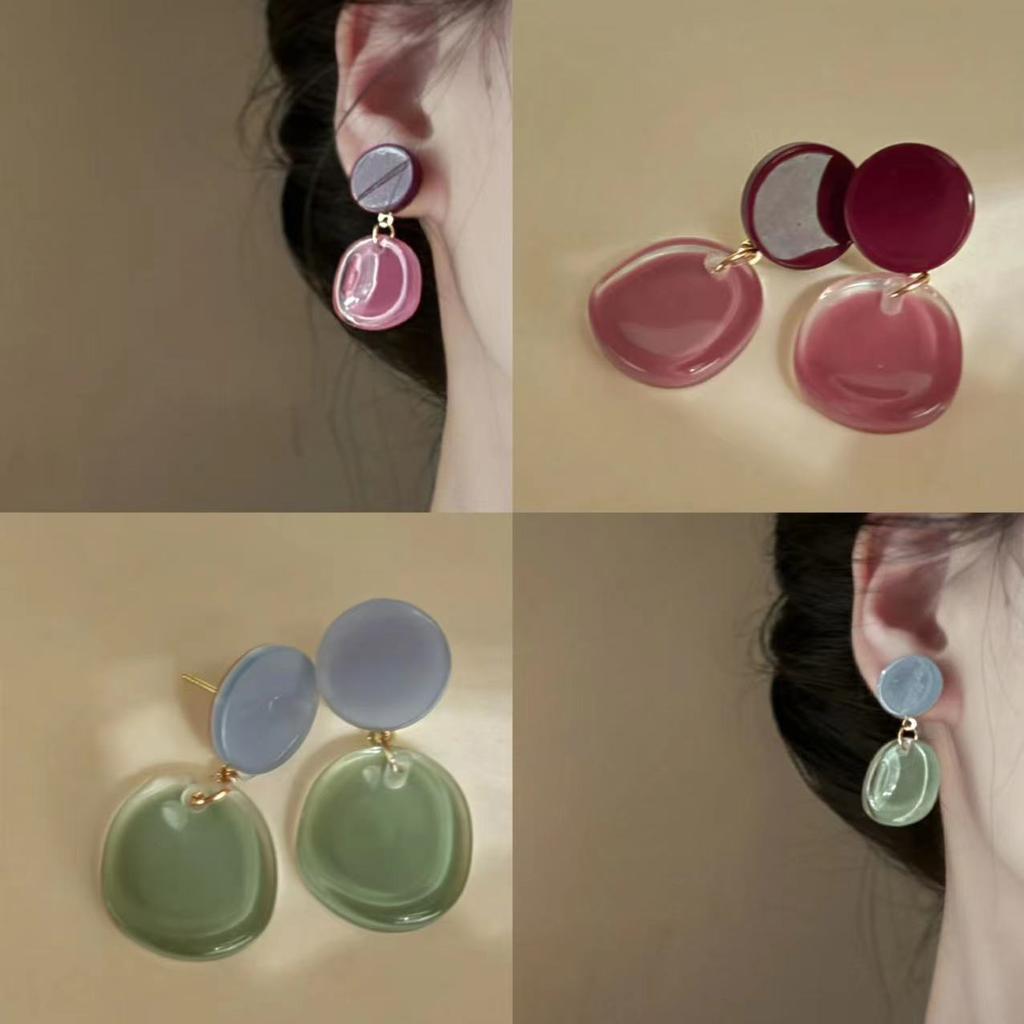 Silver Needle Small Fresh Ice Transparent Contrast Color Resin Earrings Simple Earrings Mori Ins Commuter Versatile Earrings Women