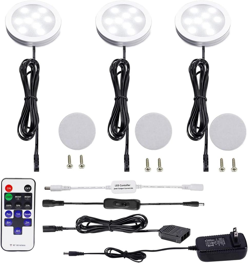 AIBOO LED Under-Cabinet Pack Light, 3-Lamp Kit with RF Remote Control, Dimmable for Home Kitchen Countertops (Neutral White 6000k)