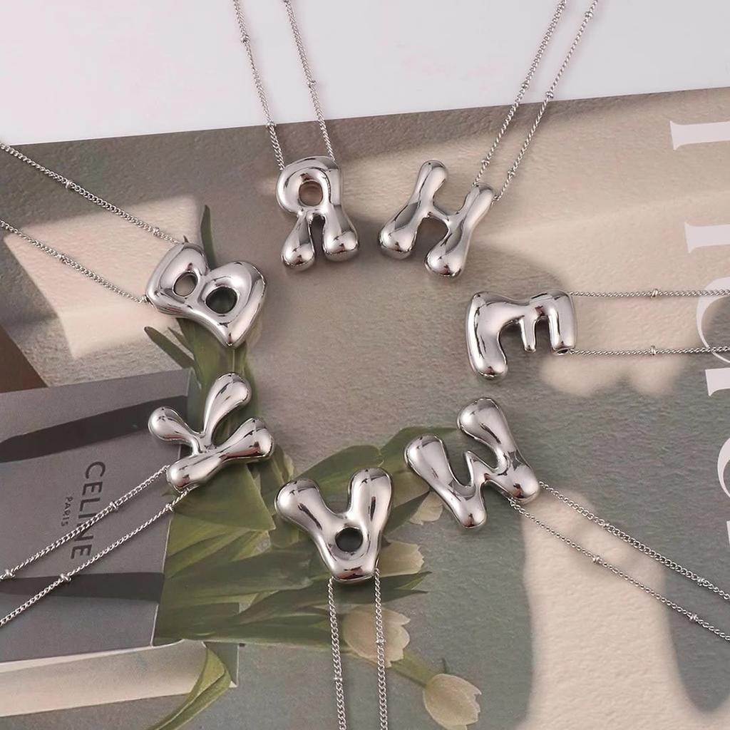Creative A-Z Balloon Bubble Letter Pendant Necklace for Women Silver Plated Chunky Stainless Steel Necklaces Gift