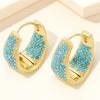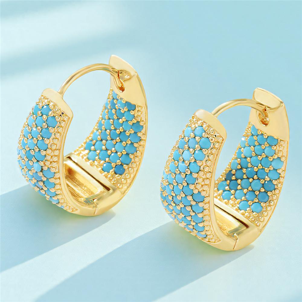 Luxury Female Blue Turquoise Stone Hoop Earrings Vintage Fashion Gold Color Wedding For Women