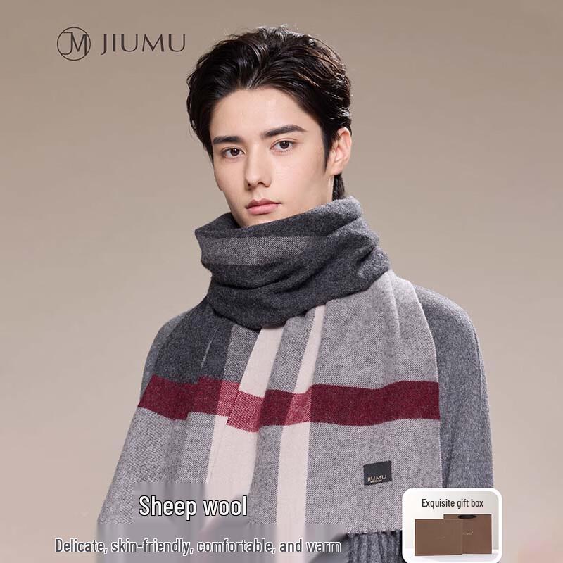 JIUMU Men's Pure Wool Plaid Scarf