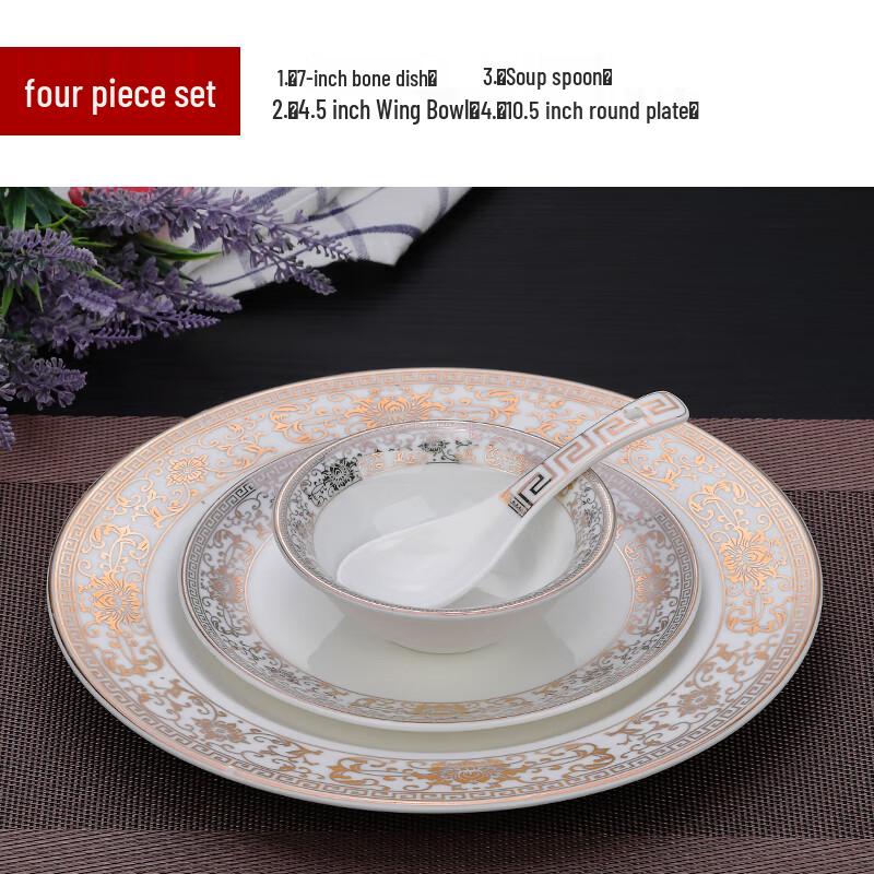 High-End Chinese Ceramic Gold Rim Tableware Set (4-Piece)