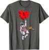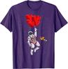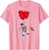 Romantic Astronaut Flying with Heart Balloons Space Graphic Tee Casual Cotton T-Shirt for Men