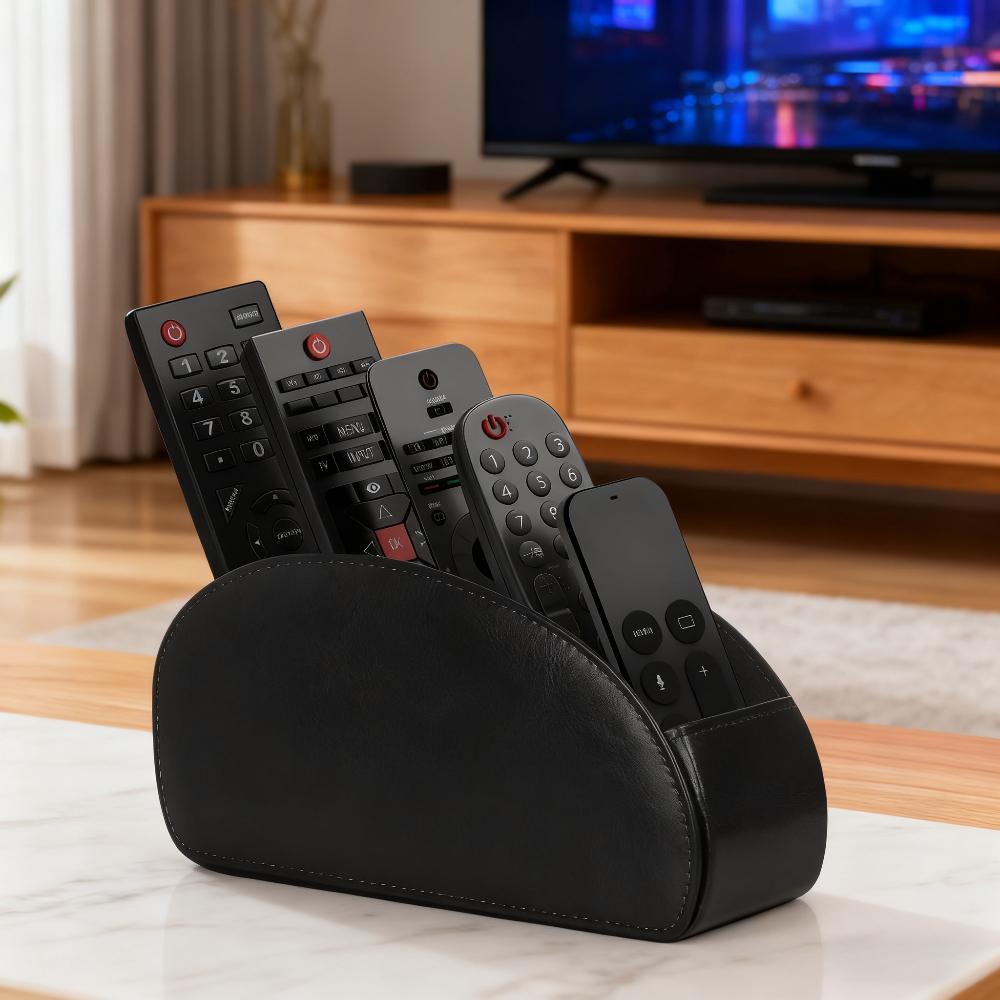5 Grid Pu Leather Organizer Remote Control Phone And Tv Holder Desk Storage Box Cosmetics Brush