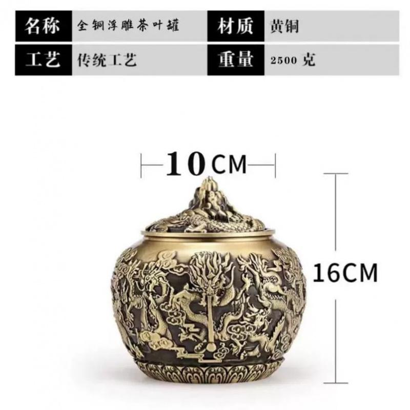 Brass High-end Nine Dragon Tea Leaf Canister Sealed Dry Goods Grain Storage Box Moisture-proof Storage Jar Ornament
