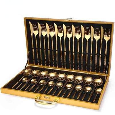 24pcs Gold Dinnerware Set Stainless Steel Tableware Set Knife Fork Spoon Luxury Cutlery Set Gift Box Flatware Dishwasher Safe