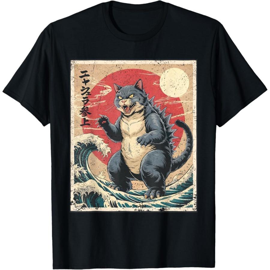 CHzwBEST Catzilla Funny Cat Graphic Tee Men Women Japanese Anime T-Shirt