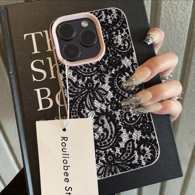 Black Lace Pattern Personalized Mobile Phone Case For iPhone 17 16 Pro Max 15 14 Plus 13 12 11 XS X XR 16E 17 Air Soft Cover