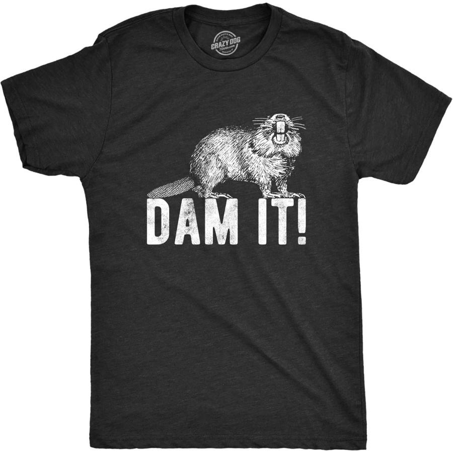 Mens Dam It T Shirt Funny Beaver Dam Tee Sexist Joke Top for Guys