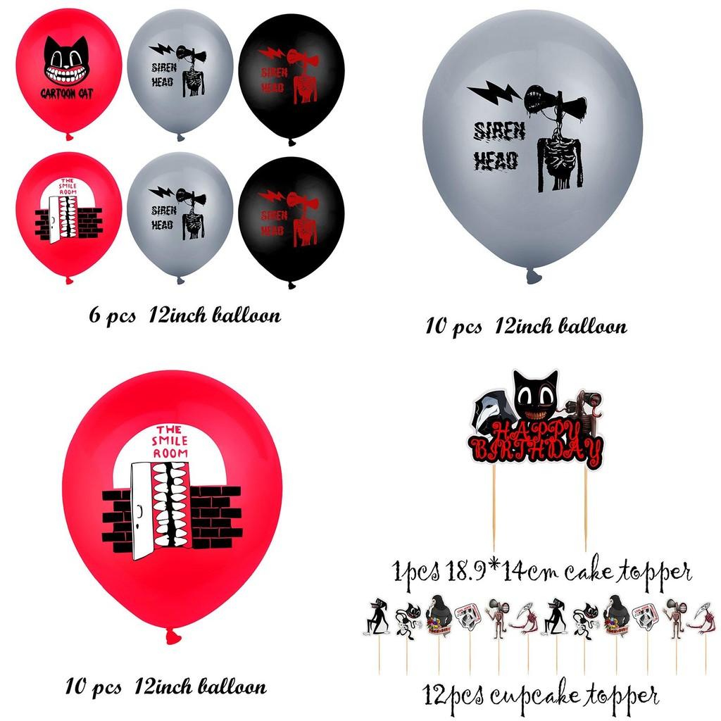 Siren Head Cartoon Cat Horror Theme Birthday Party Balloon Banner Cake Topper Set